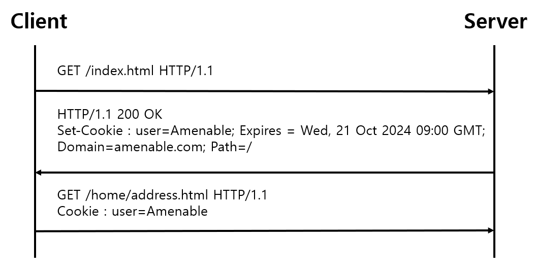 - HTTP 헤더에 쿠키를 포함하여 응답
