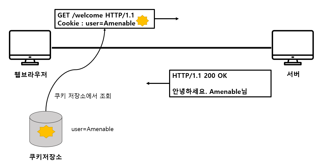 - HTTP 헤더에 쿠키를 포함하여 응답